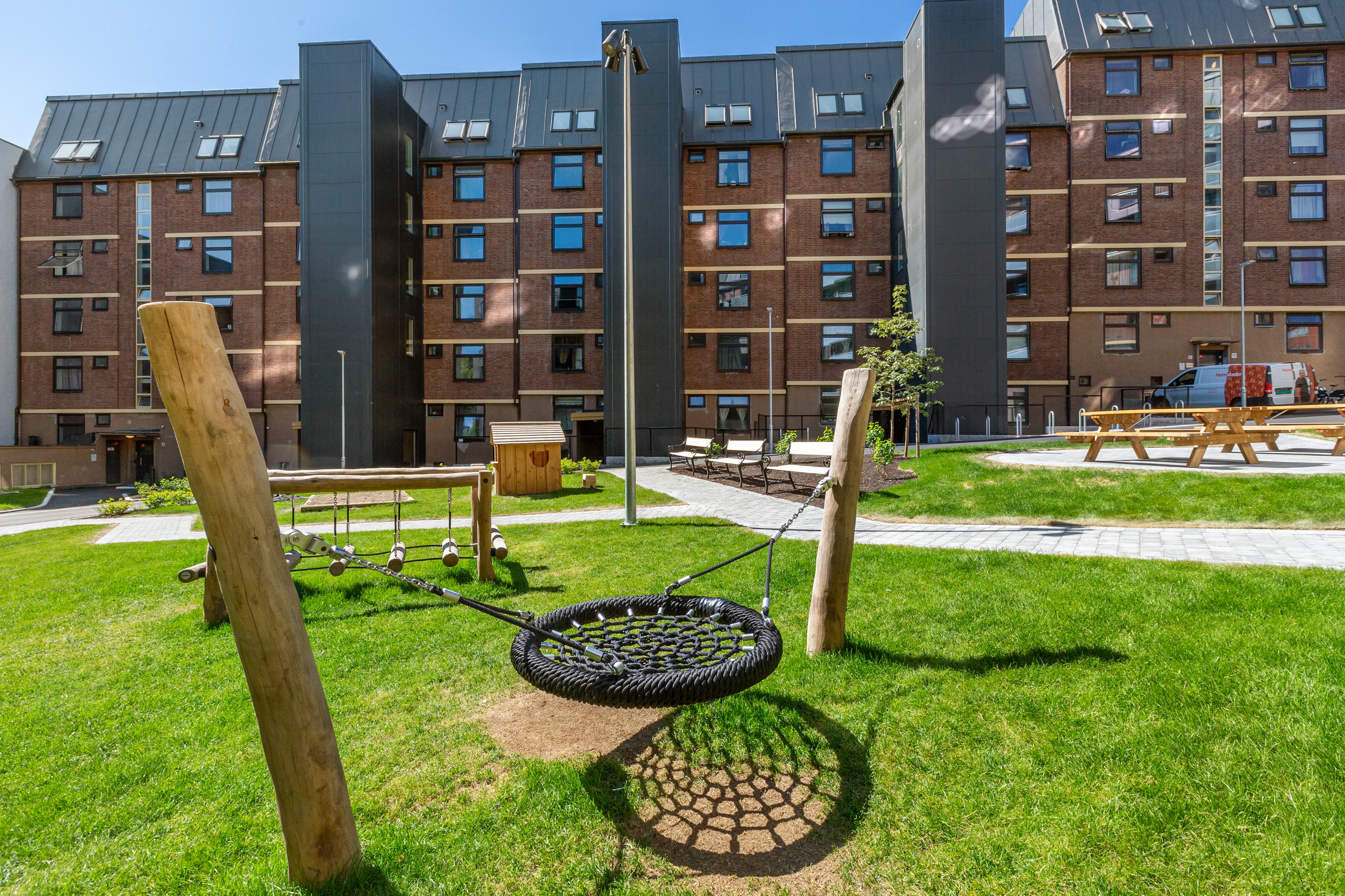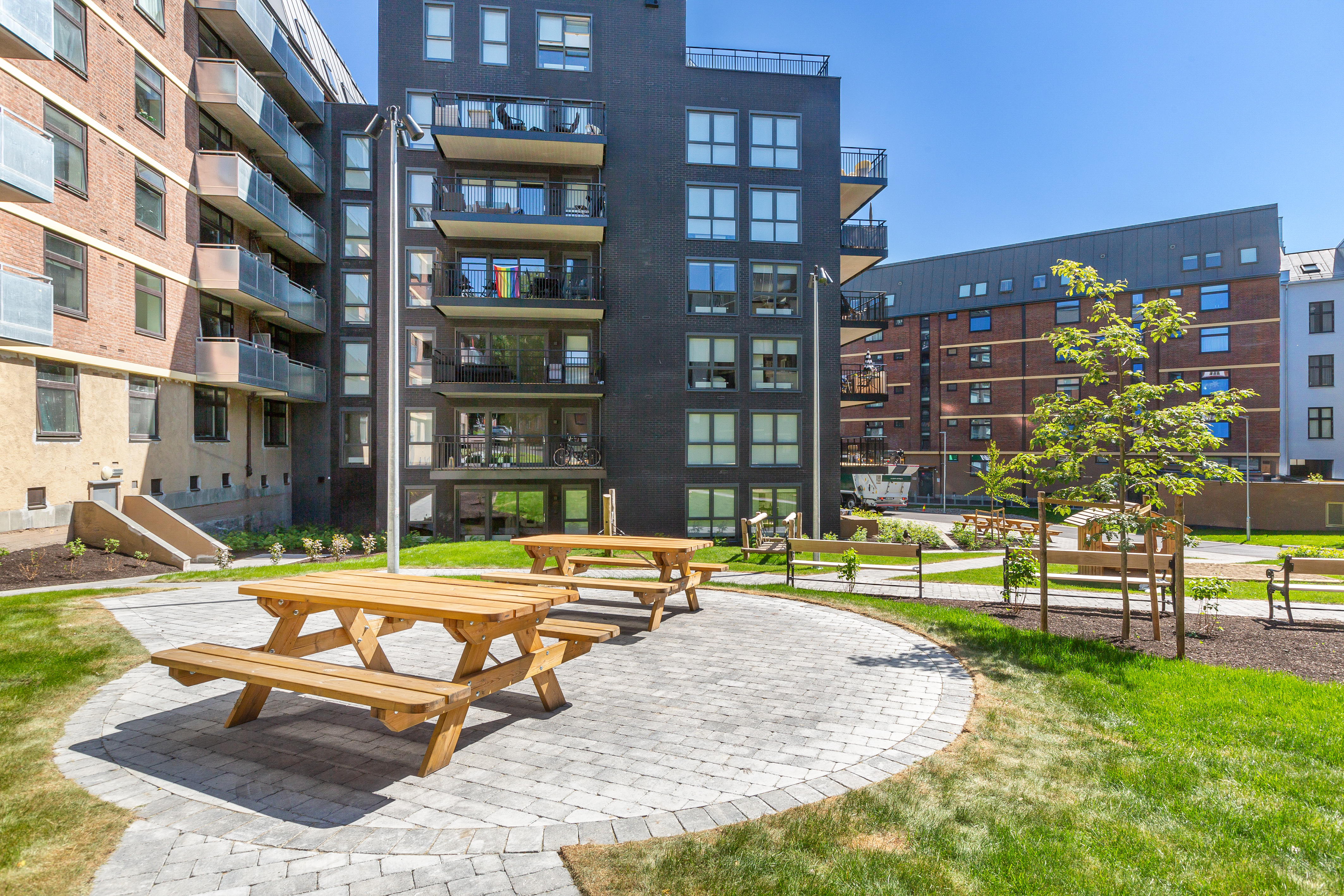 Opplev vår idylliske bakgård med parkområde, sitteplasser og et trygt lekeområde – perfekt for alle aldre. Hos oss legger vi vekt på å skape et trivelig bofelleskap hvor alle bidrar, og våre dedikerte vaktmestere er tilgjengelige hver ukedag for å sikre at alt er på stell.